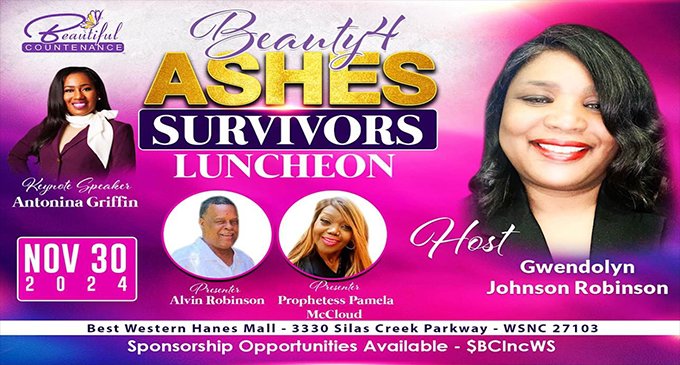 To help combat this tragic issue, Gwendolyn Robinson founded her non-profit organization, Beautiful Countenance, a decade ago. To bring more attention to this national crisis and honor those who have survived domestic violence, Beautiful Countenance will hold their annual Survivors Luncheon on Saturday, Nov. 30, at the Best Western located at 3330 Silas Creek Parkway at 11:30 a.m. The event is free for survivors of domestic violence; donations and sponsorships are welcomed.