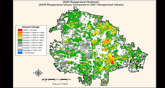 “You may think that’s only 40% lower than 100, but actually to get those properties up to 100% of fair market value their value would have to go up 66%,” Burgiss said. “Everything we’ve seen of the last four years shows phenomenal real estate growth. Most of the growth occurred in 2021 and 2022. There was continued growth in ‘23 and ‘24, just not at the same pace. A tremendous amount of change has been experienced in the real estate market. We will reflect that in our evaluations, and you will see significant changes in valuations.”