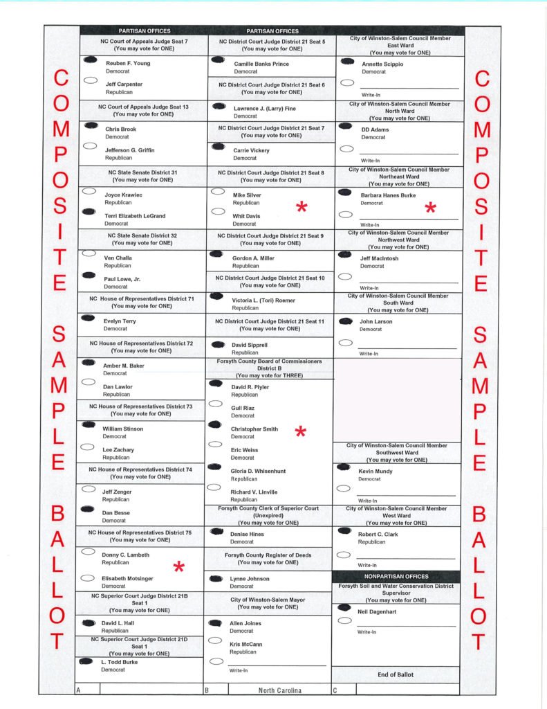 Here are The Chronicle’s endorsements for the Election Day 2020. Our sample ballot displays our choice picks for the races in Forsyth County. We feel some of our picks deserve explanation. We have noted those with a red *. See the notes section for further explanations.