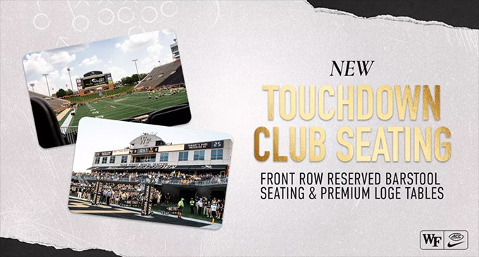 The new Touchdown Club Seating can be requested by calling the Wake Forest Ticket Office at 336-758-3322.